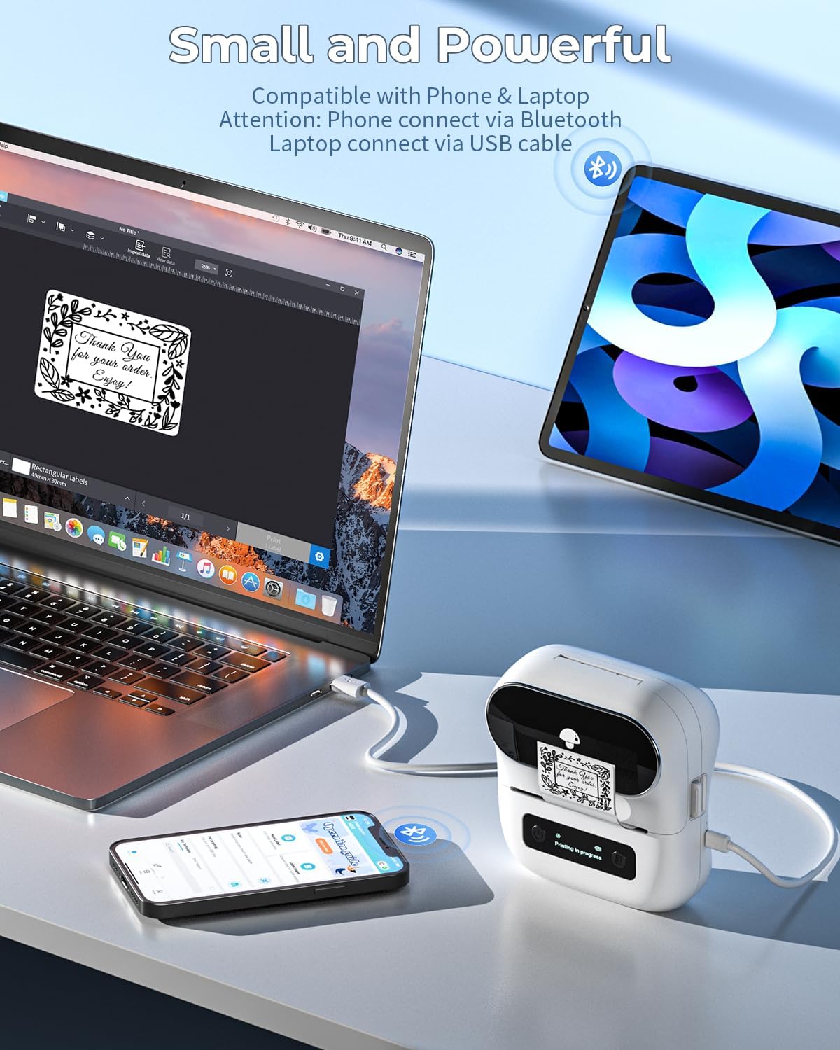 طابعة محمولة بوزن خفيف وحجم صغير، مثالية للاستخدام في المكتب أو أثناء التنقل. تأتي بتصميم أنيق وسهل الحمل، مما يجعلها الخيار الأمثل لأصحاب الأعمال الصغيرة، المتاجر، والمستخدمين المنزليين.